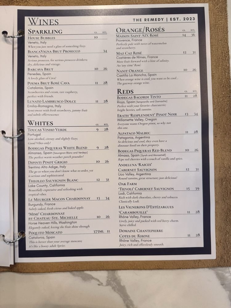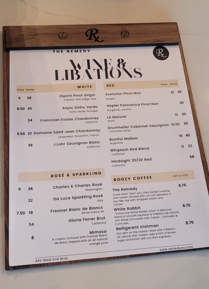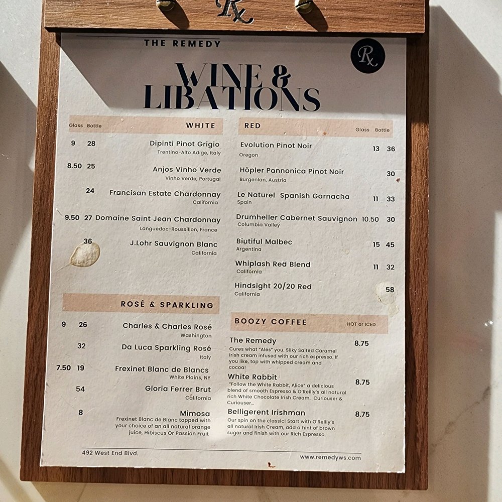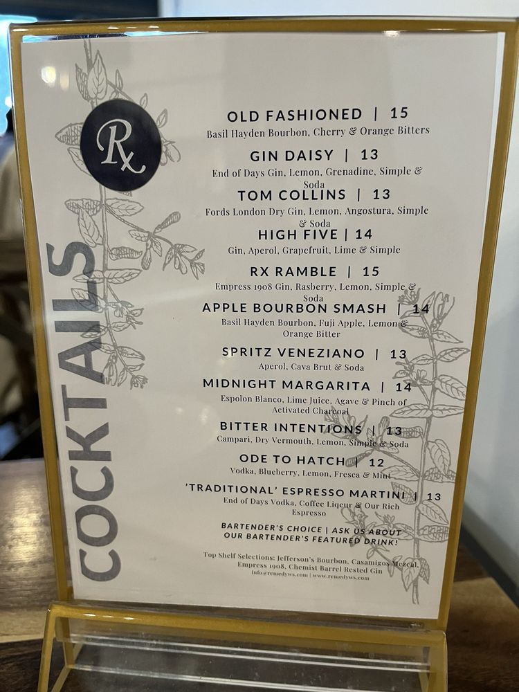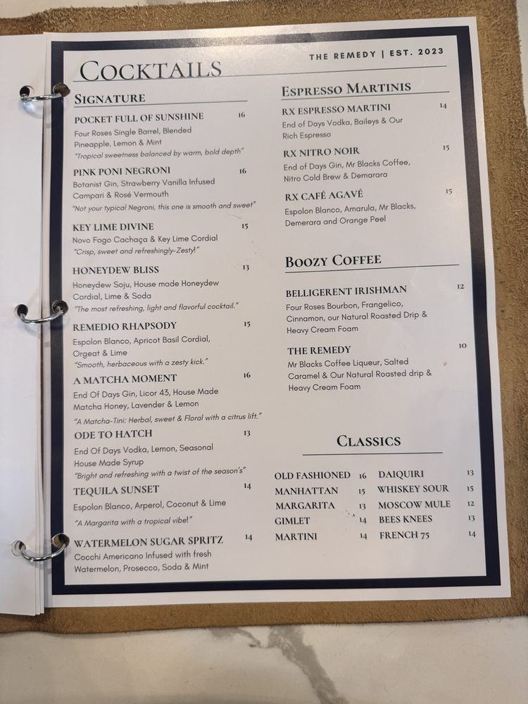 The Remedy Cafe and Bar Menu
