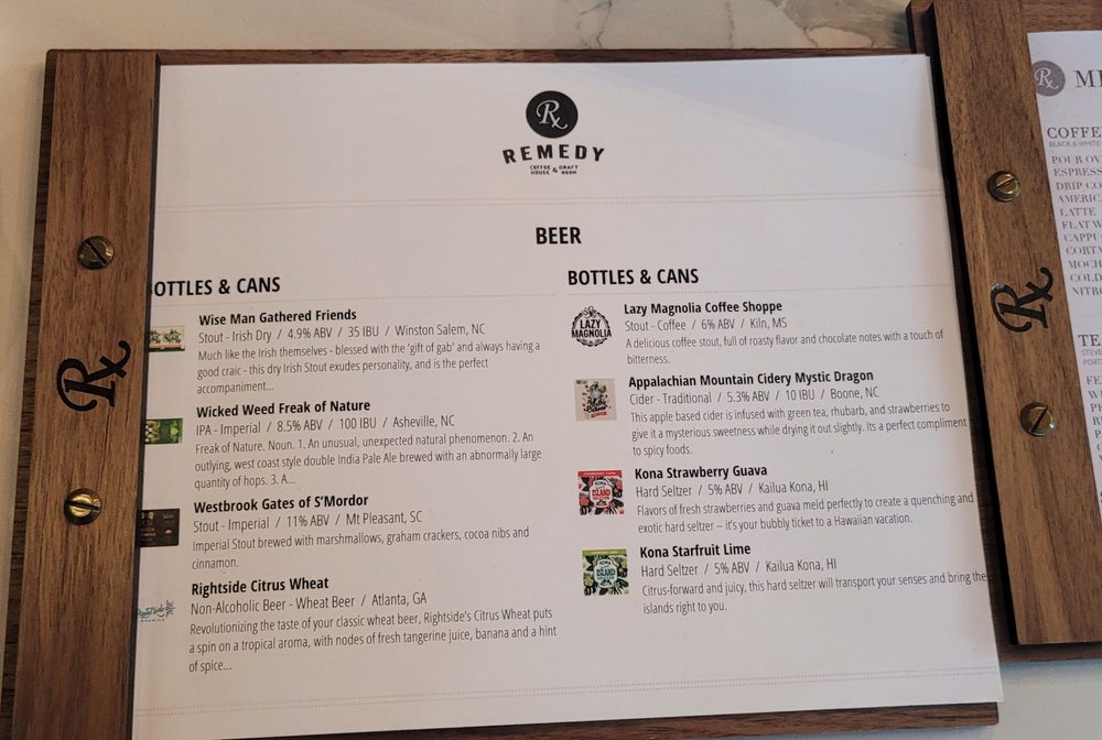 Nestled at 492 W End Blvd in Winston-Salem, The Remedy Cafe and Bar is a haven for coffee lovers and cocktail enthusiasts alike. With a relaxed atmosphere, it invites guests to unwind with friends or indulge in a quiet read. The full bar offers signature cocktails like the refreshing Porch Swing and the revitalizing Rumfire Revival, tailored to elevate your dining experience.